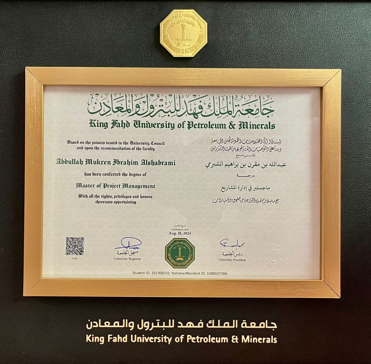 بمناسبة تخرجه من جامعة الملك فهد للبترول والمعادن بدرجة الماجستير في إدارة المشاريع للعام الدراسي 1445 هـ